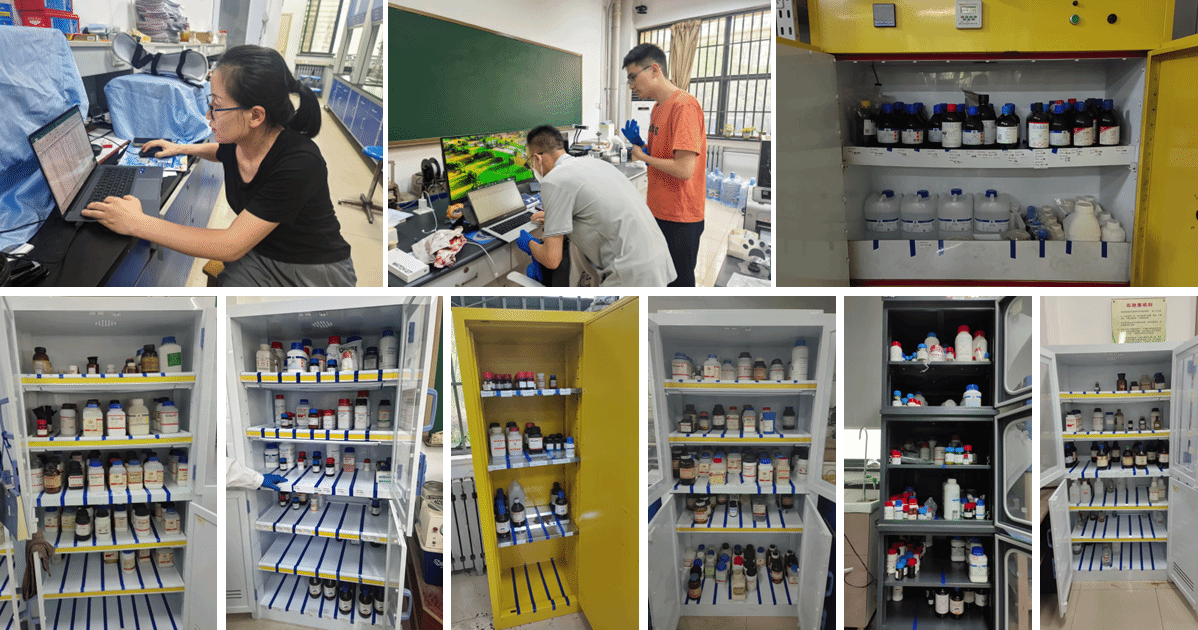 实验室危险化学品特性,系统阐释危险化学品分类标准,涵盖爆炸品、易燃气体、易燃液体等类别划分依据及辨识要点。同时,从储存环境条件、专用容器选型、标识规范设置,到使用过程操作规范、废弃物合规处置等全流程,对危险化学品储存使用准则进行全面且细致的专业指导。在技术人员的专业协助下,学院各实验室完成危险化学品系统分类与规范存放工作,有效提升危险化学品管理的科学化、规范化水平。