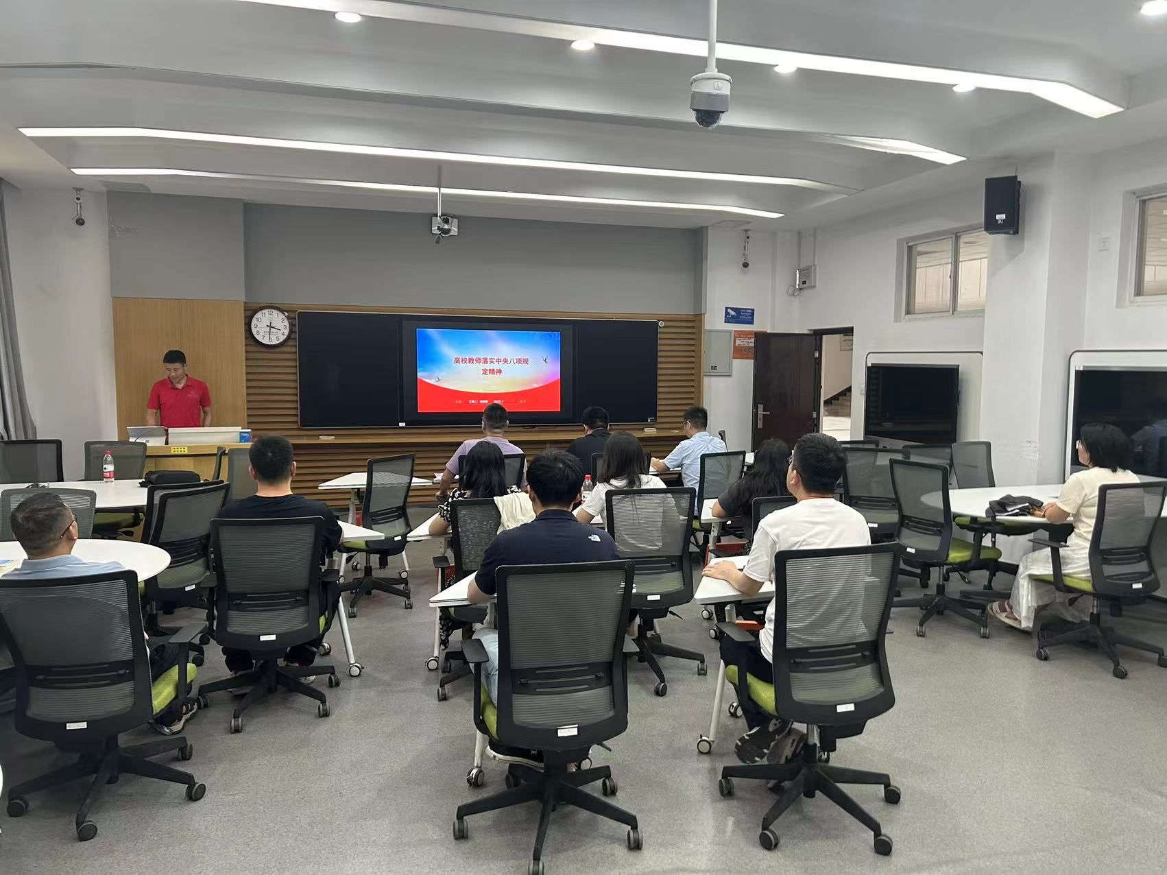 杨如森同志以高校教师落实中央八项规定精神”为主线,结合理科、工科不同专业特点,剖析一线教师易触碰的纪律“雷区”,他讲到,理科教师实验室设备采购,必须严格执行招投标程序;工科教师与企业合作研发,不得违规兼职取酬等内容,鲜活的专业案例让在场教师深受触动。在总结时强调一线教师是落实中央八项规定精神的‘神经末梢’。每一位教师都作风建设的参与者和践行者,大家要以清朗教风培育优良学风,为学院人才培养筑牢纪律根基。