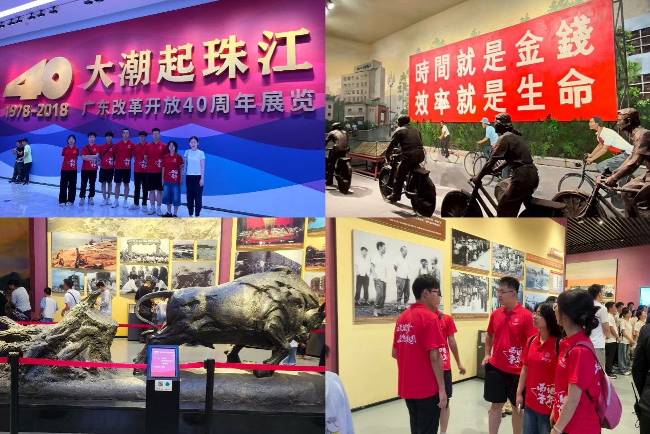 在深圳改革开放展览馆,师生们通过实物展陈、历史影像、互动场景等多元形式,全景式回顾了广东改革开放40余年的壮阔历程。展馆内,从“蛇口第一炮”的历史照片到华为、腾讯等科技企业的创新成果,从“三天一层楼”的深圳速度到粤港澳大湾区的规划蓝图,每一件展品都诉说着改革开放的生动实践。