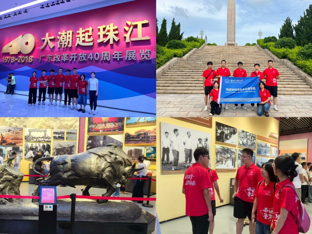 在深圳改革开放展览馆,师生通过“蛇口第一炮”历史照片、华为5G芯片实物等展品,全景式回顾广东改革开放40余年历程。2023级本科生满语涵感慨:“从‘三天一层楼’的深圳速度到粤港澳大湾区规划,改革开放不仅是历史进程,更是永不褪色的精神火种。作为电子材料专业学生,我们要以‘钉钉子精神’攻克技术难题,助力中国制造向中国创造跨越。”在深圳革命烈士陵园,师生向纪念碑敬献花篮、重温入党誓词,从“辛亥革命时期的深圳人”到“改革开放时期的建设者”展区中,感悟不同历史时期的奋斗精神。2024级本科生杨鑫动情地说:“烈士们用生命铺就今天的繁荣,我们要传承红色基因,在‘缺芯少屏’领域贡献青春力量。”