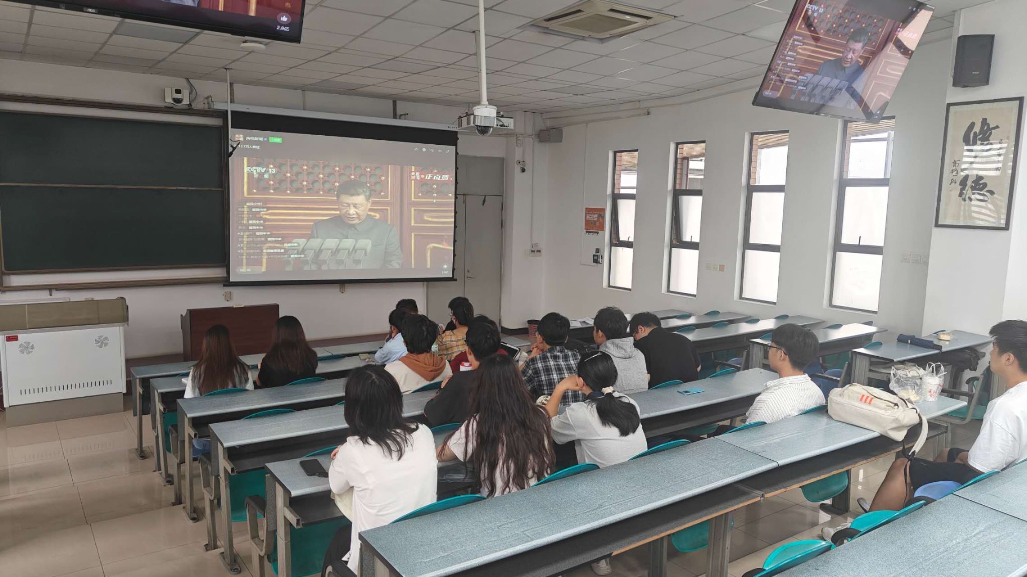 直播结束后,学院党委书记宋刚锋说:“观看盛大阅兵仪式,聆听习近平总书记重要讲话,心潮澎湃,深受震撼,铿锵步伐、巍峨阵列,既是国威军威的集中展示,更是百年奋斗历程的深刻昭示。历史川流不息,精神代代相传,我们要从恢弘史诗中汲取力量,学院党委将主动谋划,奋发有为,营造潜心育人、奋发向上的良好氛围,为国家培育更多担当民族复兴大任的栋梁之材;学院广大教师要牢记教书育人使命,立足三尺讲台倾心育人,将爱国情怀融入育人全过程,用于攻关卡脖子技术,服务国家科技自立自强;学院广大学生要自觉树立远大理想,刻苦学习专业知识,锤炼过硬本领,以实际行动为强国建设、民族复兴贡献力量!”