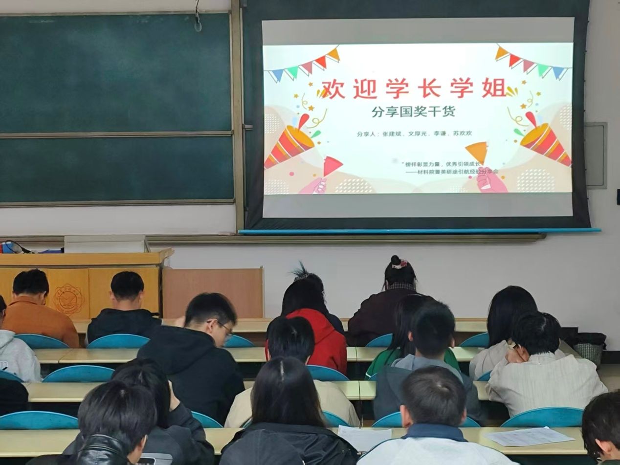 在长安校区举办“材料菁英·研途引航”国奖人物经验分享会。活动特邀2025年度国家奖学金获得者4名硕博师兄师姐现场分享,2025级研究生六十余人参与,交流氛围热烈浓厚。