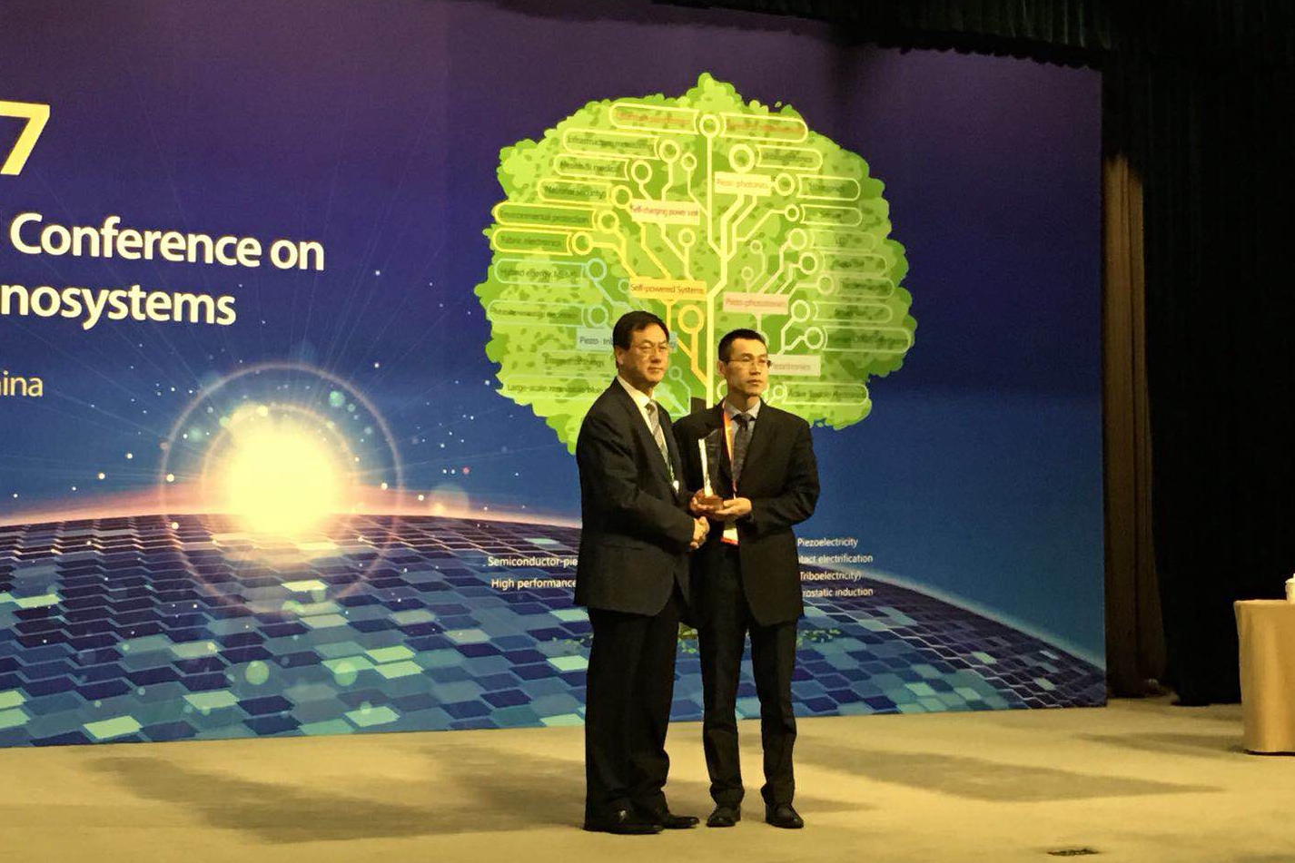 王中林院士为秦勇教授颁发2017年度“纳米能源奖”