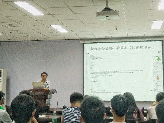 讲座开始前,刘男就假期基本安全常识及注意事项,校院两级安全应急预案做了介绍。本次专题讲座的主要内容为实验室安全与规范,分为安全事故实例分析讲解、化学实验安全操作规范及各类大型危险设备的操作规范三部分。首先,吴巍炜通过分析大量化学实验安全事故,得出事故原因,以此希望大家从中吸取教训。在这些安全事故中,有诸如因实验用品摆放不合理,未检测高温或氧化性等引起燃烧甚至爆炸的事故;也有因未作安全防护而导致的烧伤甚至致残致死的事故。分析事故原因,大部分是由于安全意识淡薄、操作不规范等引发;对此,吴巍炜多次强调提高安全意识和进行严格规范化操作的重要性,并对实验室安全事故的防范及相关应急处理做了介绍。结合事故原因,吴巍炜详细讲解了化学试剂的安全存放、各类仪器的使用规范。在化学实验过程中需要严格控制环境条件,有时须用到高温高压及真空设备,因此在讲座的最后吴巍炜对压力容器、高温炉、真空设备等大型危险设备的安全操作进行了强调说明。