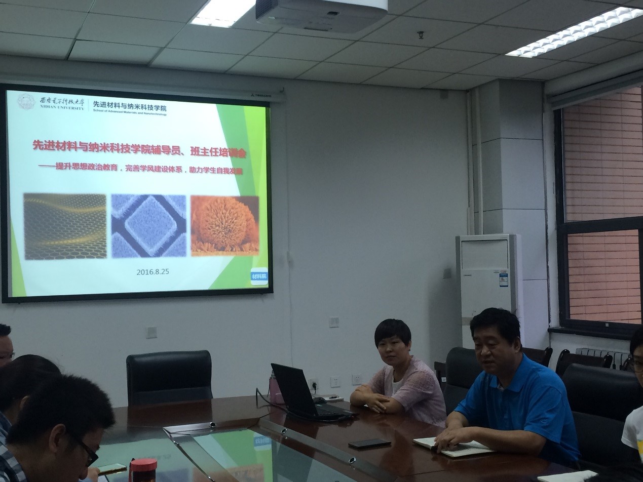 于8月25日在G-119会议室举办全体辅导员、班主任培训会,从学院两大教育管理体系入手,对全体辅导员和班主任进行一次细致有效的培训。学院党委书记黄伟,团委书记刘男,全体辅导员和班主任参加了此次培训会。