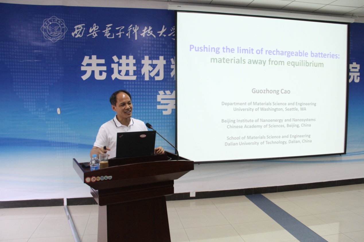 邀请,美国华盛顿大学材料科学与工程系曹国忠教授于2015年7月16日来学校访问。并于16日上午在南校区G栋118报告厅作了题为“Pushing the limit of rechargeable batteries: materials away from equilibrium with increased capacity and high voltage”的学术报告。报告由学院执行院长史小卫教授主持。