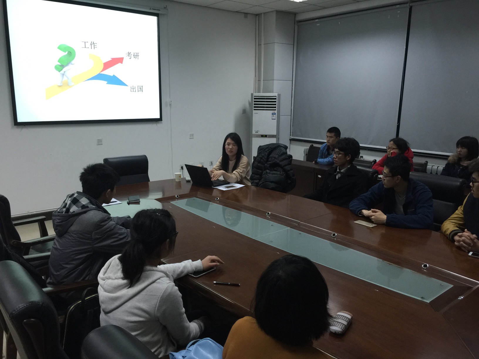 于G楼119举办应用化学系班主任交流会,15级导员钟决坤、班主任张鹏、青年教师周雪皎老师及1517021班所有成员参加了此次的交流会。