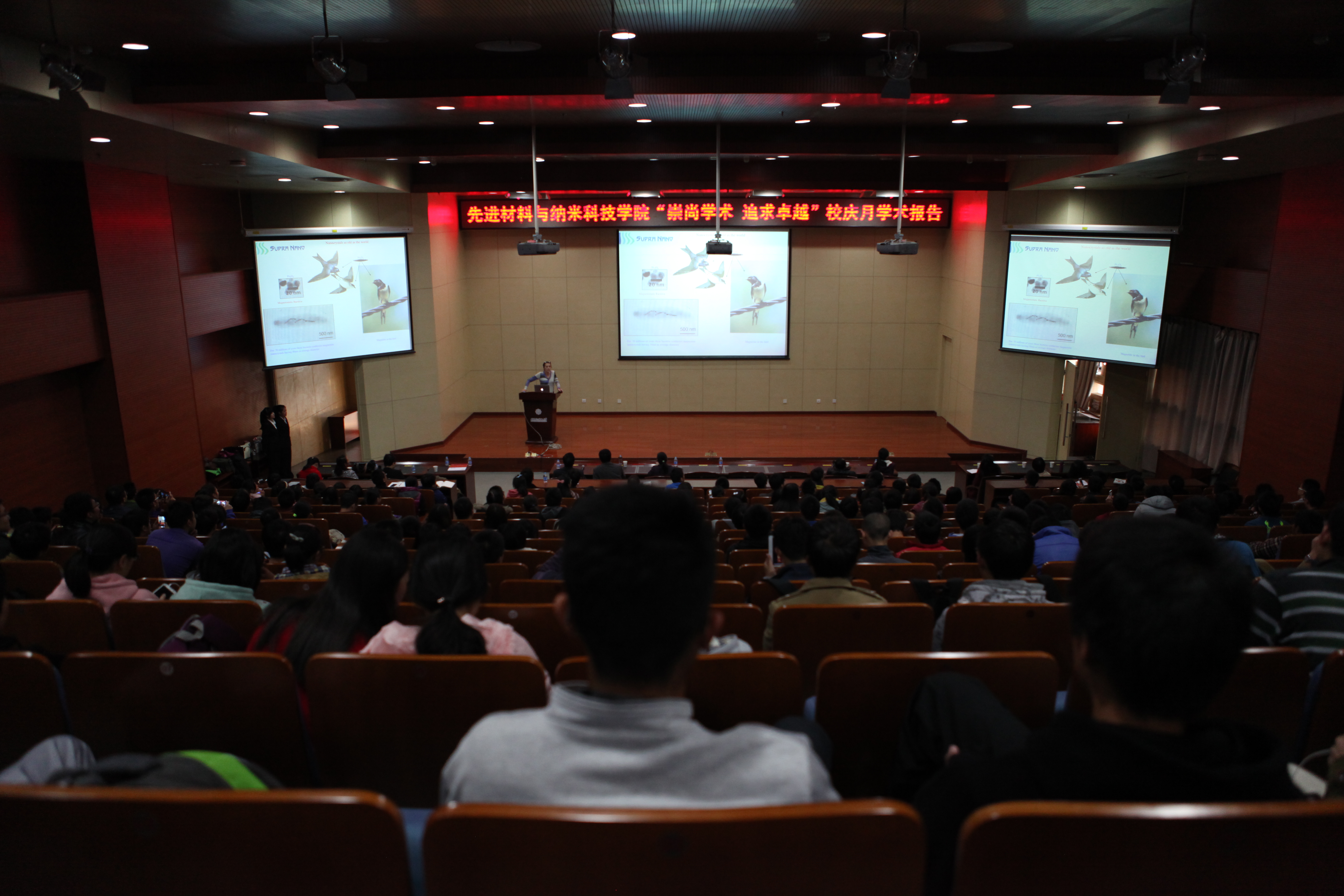 报告会上,Pileni院士对超晶体的定义、生长和应用进行了生动而深入的阐述。纳米晶体结构也就是纳米颗粒的结晶度,控制了颗粒在超晶体中所表现出来的集群性能,以及超晶体的光学、电学、力学和一系列的物理、化学特性。Pileni院士为与会师生直观生动地演示了纳米技术与自然界中众多现象存在共性,总能找到自然界中的纳米世界。Pileni院士深入浅出地报告内容和大师级的学术水平很快将与会老师和同学们的积极性调动起来,现场气氛异常活跃。 随后,Pilen院士与师生进行了热烈交流的讨论。与会师生积极地提出了各类问题,有关于纳米晶体和超晶体的本质区别和关联,超晶体在生活中的应用,还有关于如何做好科学研究,是选择坚持还是转换方向,Pilen院士认真地对每个问题做出了详细地解答,同时鼓励女性积极投身到科学研究的队伍中来。学术交流气氛十分热烈,报告会结束后还有大一新生主动请Pileni院士赠言,值得鼓励与表扬。本场学术报告不仅为学院带来了一场原汁原味的学术大餐,也使与会师生领略到了世界知名科学家的大家风范,更加激发了广大师生投身科研、钻研学术的热情。 据悉,根据学校“遨游科学”2014年研究生学术年会的总体安排,a片动画 成立了由院长牵头的领导小组,负责学术年会的统一部署和组织协调。近期将继续邀请材料相关领域的国内外知名专家来校交流讨论,旨在落实建设材料特色学科,营造“崇尚学术、追求卓越”的良好氛围,加强校园学术文化建设,激发学生科学研究的积极性与创造性。(通讯员 卢琳) 新闻链接: Marie-Paule Pileni,欧洲科学院院士,法国大学联盟高级成员曾担任主席,法国居里夫人大学(巴黎六大)杰出教授(法国排名第一公立大学),美国乔治亚理工客座教授,发表论文400多篇,被引用15996次,H因子66。 主要研究方向:纳米材料在介观尺度的组装及所表现出的集群性能,纳米材料的合成、表征及物理性能研究,生物酶的化学修饰,凝聚态物质的物理化学,胶体科学,太阳能,光物理和光生物学,气相光化学等。 曾获得荣誉:胶体界面科学杂志(JCIS)终身成就奖;法国国家荣誉勋章(指挥官级);歌德堡皇家科学与艺术学会外籍院士;西班牙皇家化学会的Catalán-Sabatier奖;欧盟研究委员会ERC高级项目资助;欧罗巴科学院院士;英国皇家化学会院士;法国国家荣誉军团勋章(军官级);法国科学院Emila Valori奖;法国国家荣誉勋章(军官级);玛丽居里诞辰100周年纪念讲座;欧洲科学院Blaise Pascal奖章;瑞典皇家工程科学院院士;荷兰皇家艺术与科学院笛卡尔-惠更斯奖;美国Welch基金会lecture奖;德国洪堡基金会高级研究奖;瑞典Chalmers大学名誉博士;日本化学会lecture奖;法国引用最高科学家奖;日本Riken研究所特殊贡献奖;美国化学会langmuir奖等。