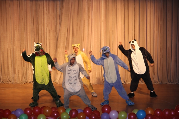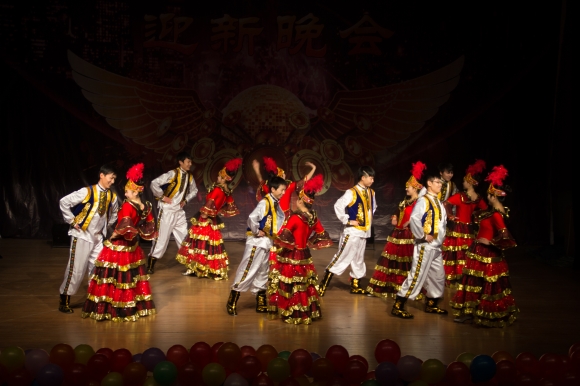 晚会由研一新生带来精彩非凡的影子舞作为开场,“啤酒起子”乐队充满动感的歌曲将大家带入一片音乐的海洋,数 统学院同学带来别开生面的广播操,辅导员们精心准备的哈萨克舞蹈嗨翻全场,妙趣横生的哑剧《江南style》,欢笑不断 的小品《西游记》,节目间的互动环节及抽奖活动更是将现场气氛推向一个又一个的高潮。除此之外,神秘的魔术、好看 的动漫T台秀、小品、民乐演奏、脱口秀、恢弘的武术表演也各具特色,异彩纷呈。在演出之余,现场还播放了领导和同 学们对学院的祝福,令人感动,与此同时,同学们积极参与微博墙时时互动,表达了自己对晚会的支持。最后晚会在歌曲 《相亲相爱》中完美落下帷幕。