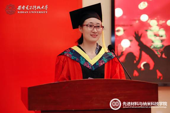 “感恩、坚持、使命”硕士毕业生谭鑫茹同学用这三个词概括了她此刻想说的话。她表示会永远感恩老师们的栽培与教诲,坚持材料人的抱负和情怀,肩负强国的使命担当,以最饱满的热情迎接未来的挑战,并祝愿学院桃李满园、勇攀高峰、再谱华章。