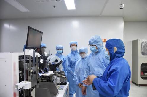 接着,队员们参观了公司展厅和员工活动区。罗华兵向大家详细介绍了芯片设计生产封装的各个流程,同学们听的全神贯注、受益匪浅。最后,大家穿上防尘服,在工作人员带领下进入公司生产测试车间和封装车间,实地参观学习了芯片的测试与封装环节,收获了新奇的体验。结束后大家纷纷表示,未来集成电路行业是最有潜力的行业之一,需要一代代人为之努力奋斗,针对“卡脖子”难题,我们一定要矢志奋斗、坚定不移的走下去。