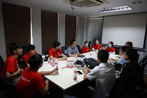 在浙江大华股份技术有限公司会议室,实践队员们与西电2010届校友、公司海外部经理安朝飞进行了深度访谈交流,纷纷就专业学习、就业择业、职业发展、行业前景等问题向学长提问,安朝飞也结合个人经历逐一进行了详细解答。大家通过此次访谈更加清晰认识到,在校期间学习基础知识要稳扎稳打,学生的本职工作就是好好学习,也纷纷表示在今后的学习生活中要更加努力上进、坚持不懈、勇攀高峰。