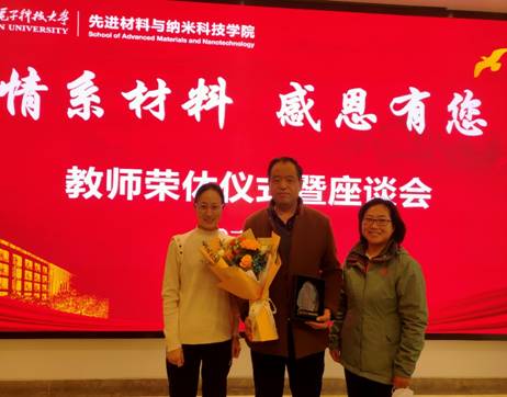 发展历程中做出的突出贡献;衷心希望三位老师“退而不休”,积极为学院发展建言献策,一如既往地关心、支持学院的发展;真诚祝福他们开启人生新征程,退休生活健康快乐,绽放出人生另一种精彩。随后由学院领导为荣休教师颁发定制纪念碑,应用化学系青年教师向荣休教师献花。纪念奖杯上刻有“倾尽丹心育桃李奉献韶华铸师魂”,代表了学院对荣休教师几十年如一日辛苦付出,教书育人的深切感谢。