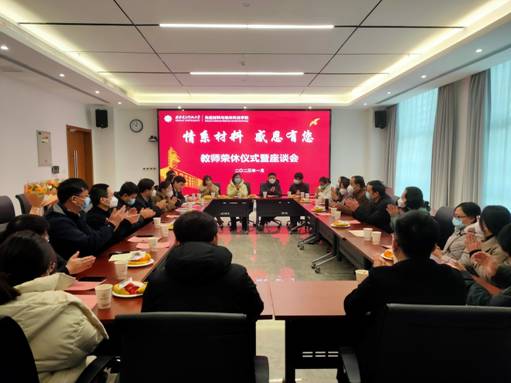 在南校区网安大楼121会议室举行“情系材料感恩有您”退休教师荣休仪式暨座谈会。学院领导班子成员、系所主任、应用化学系教师二十余人共同见证这一温馨动人时刻。会议由党委副书记陈刚主持。