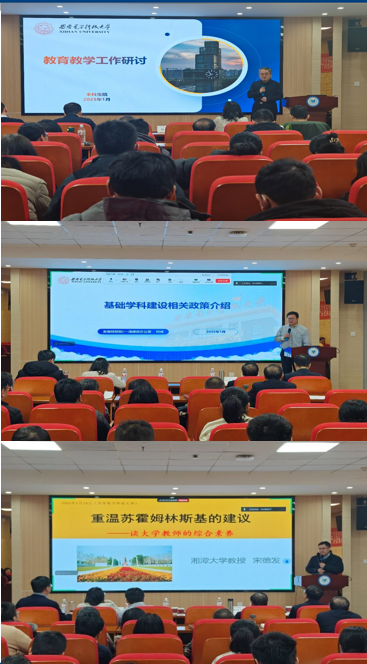 在专业设置调整、师昌绪电子材料菁英班设立及教材编著等方面的举措。邓成作《基础学科建设相关政策介绍》报告,解读学校加强基础学科建设的政策与支持措施,鼓励学院教师和团队开展基础前沿与跨学科交叉研究。宋德发以《重温苏霍姆林斯基的建议 —— 谈大学教师的综合素养》为题进行教师培训交流,结合教育理念与自身经历,从多方面阐述大学教师的综合素养,勉励学院教师努力成为教育家,为教育事业奋斗。