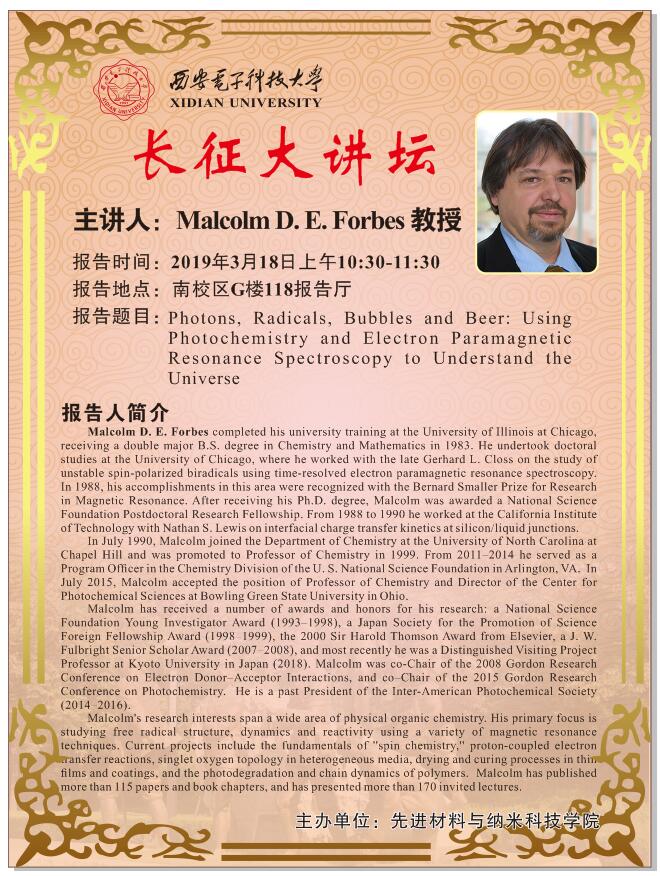 主 题:Photons, Radicals, Bubbles and Beer: Using Photochemistry and Electron Paramagnetic Resonance Spectroscopy to Understand the Universe