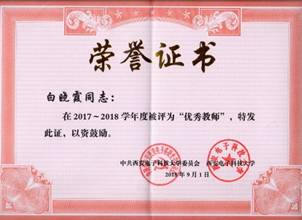 “优秀教师”荣誉称号。