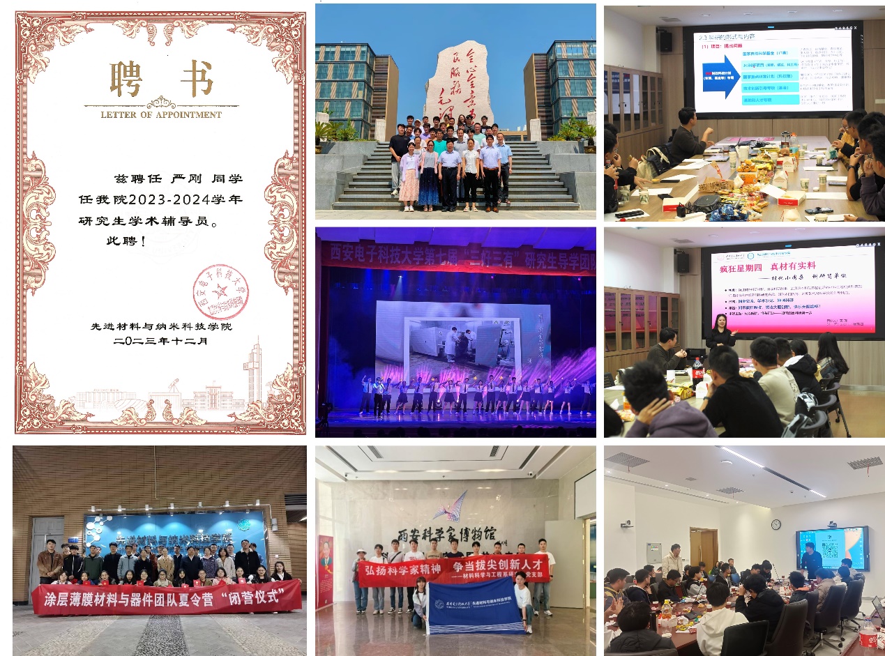 作为一名中国共产党党员,严刚坚持党的理论知识武装头脑积极参与党支部主题党日活动。他始终不忘初心,牢记科研报国的使命,为学院、师门贡献自己的青春力量。作为涂层薄膜材料与器件课题组的大师兄,他统筹安排实验室的搭建、管理以及规范化的运行,并及时解决各类实验室安全问题;协助导师管理课题组的日常,包括组会讨论、学生考勤、文娱团建等。事无巨细,事必躬亲,师弟师妹的求助他都能报以最真诚的帮忙回馈。此外,严刚积极参与课题组“三好三有”研究生导学团队的申报评选工作,加强和老师同学的交流,提高团队合作能力。他曾前往全国各地高校进行研究生招生宣传,并组织开展了“优秀科研人才选拔计划”夏令营活动。由于出色的交流能力和稳重的做事风格,他被受聘为学院首届研究生学术辅导员,成功开展了“材化学术圆桌对话”系列活动,以学术类科普和趣味科研的方法,为学院营造浓厚的学术氛围贡献自己的力量。他以实际行动诠释了一个新时代青年科研工作者的责任与担当。