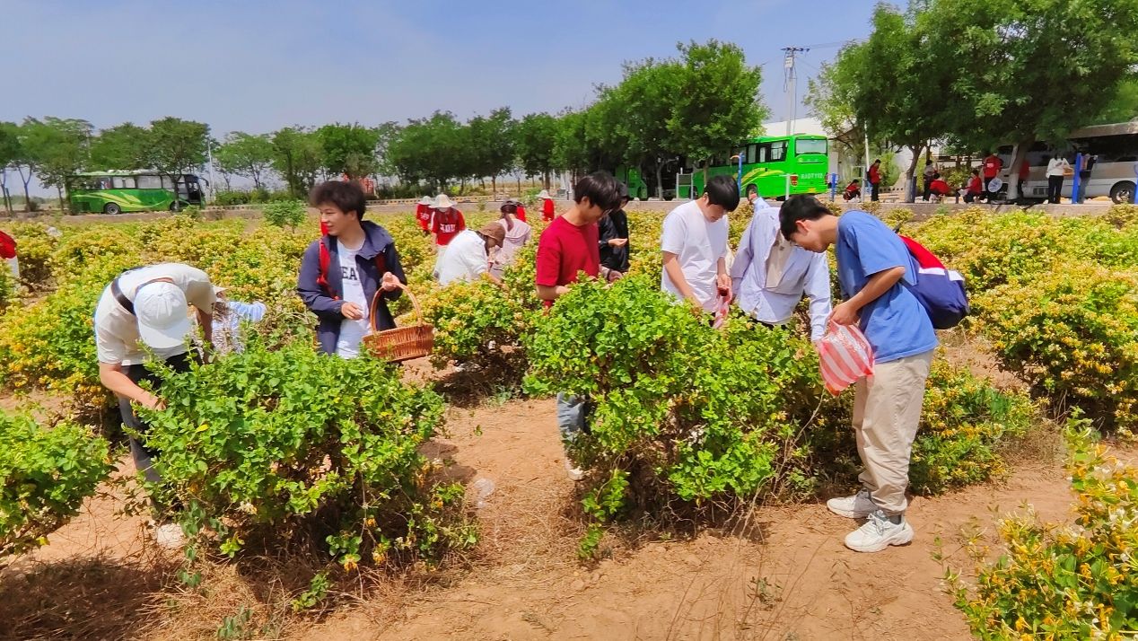 党委组织学生党员前往蒲城金银花采摘基地开展“汗水浇灌信仰 实干淬炼党性”劳动教育实践活动。