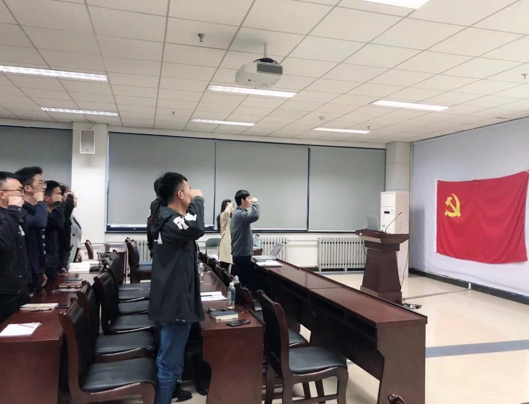 支部书记李鑫对支部的整体情况做了介绍,在支部书记的带领下全体党员奏唱国际歌并重温了入党誓词。随后,全体党员共同学习了2018年版新修订的《中国共产党纪律处分条例》。接着,组织委员简瑛瑛对党支部工作的开展,进行了人员分工;宣传委员张兴茂组织全体党员集中观看了《改革开放四十周年宣传片》。