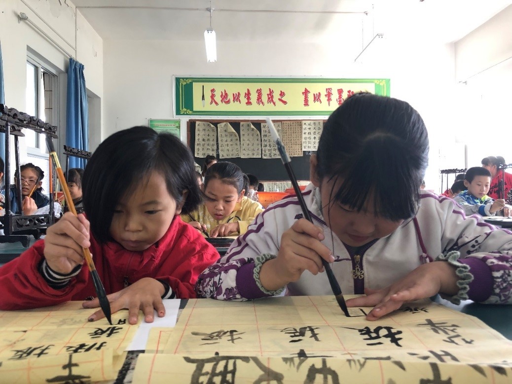 按照事先计划,扶贫小组接下来开展了三项教学活动,包括科普讲座《芯片的故事》,科普演示《无人机与积木式编程》和人文教学《学写毛笔字庆国庆》。