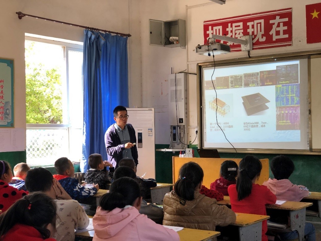 杨凌老师面向六年级学生以《芯片的故事》为题,开展科普知识讲座。讲座从芯片的概念,芯片在生活和科学技术中的作用,芯片的历史和芯片的制造等方面进行了详细的介绍。从只有十几个元件的第一块集成电路到今天包含几十亿个晶体管的高端芯片,短短几十年间集成电路技术飞速发展,给现代高新技术和人类社会带来了翻天覆地的变化。讲座引起了同学们的浓厚兴趣,赢得了同学们的热烈掌声。