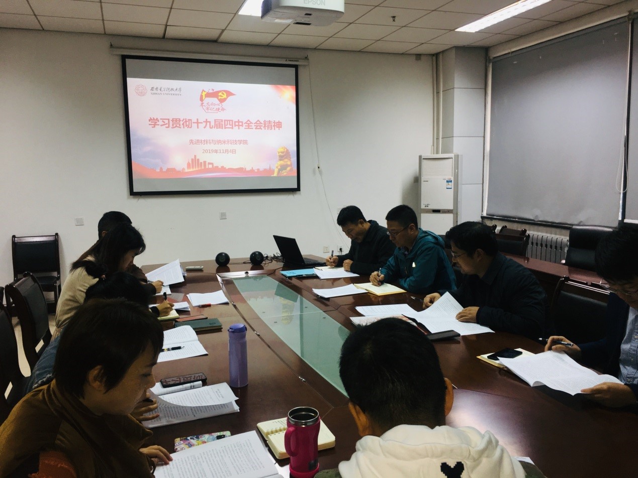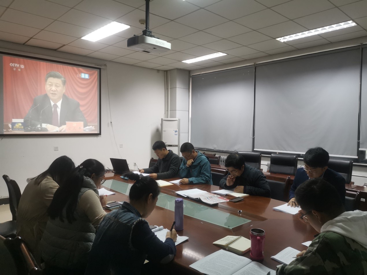 党委在G-119召开专题会议,传达学习十九届四中全会精神。学院领导班子成员和机关党支部全体党员参加,会议由党委书记卢硕主持。