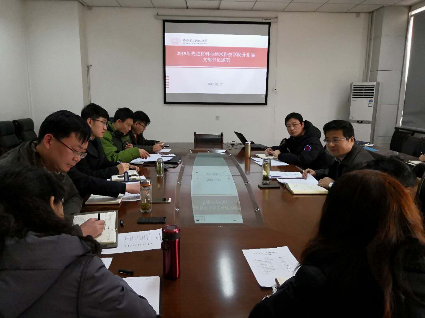 会议听取了各党支部书记2018年度工作完成情况。各党支部书记分别从支部基本情况、支部书记履职情况、基层党建工作、亮点工作、存在问题及下一步工作思路等方面依次进行了述职,实事求是地总结全年工作,查找存在问题,客观分析原因,并提出了改进的措施和举措。各支部对接院领导对工作开展情况进行了提问,并就支部活动对科研的保障与促进、教师党支部活动开展成效、研究生党支部设置等问题进行了讨论。