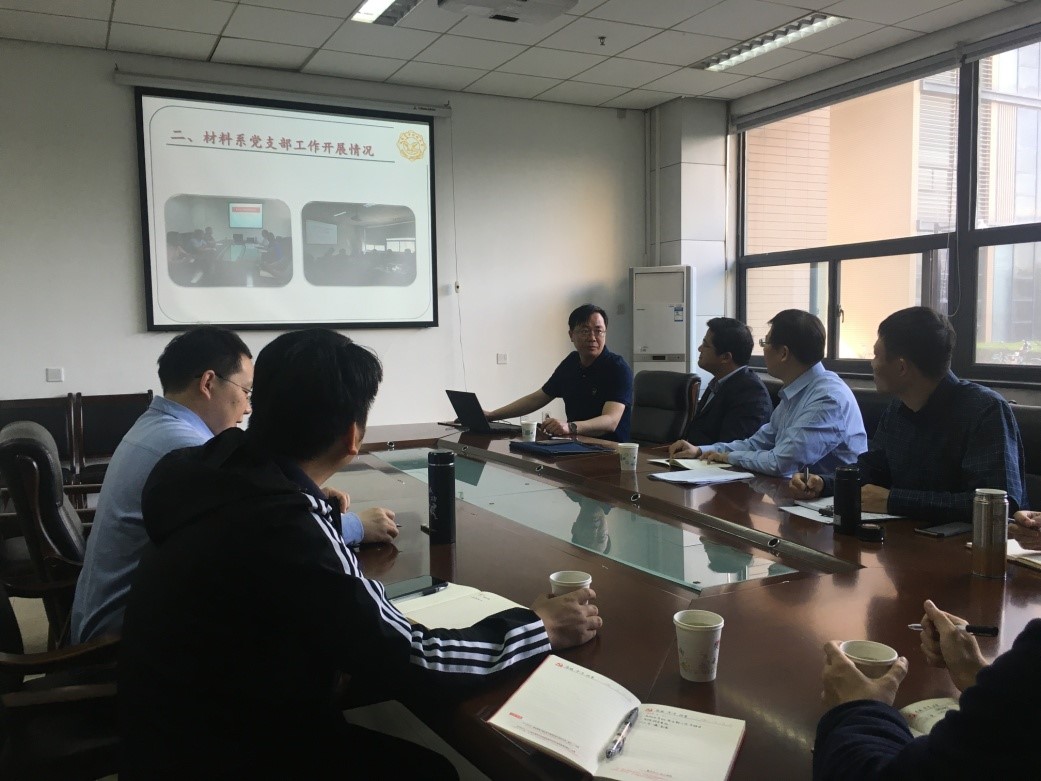 材料系教师党支部“课程思政”建设主题党日活动。材料系党支部全体支委和党员代表、学院班子成员参加此次活动。会议由材料系党支部书记李智敏主持。
