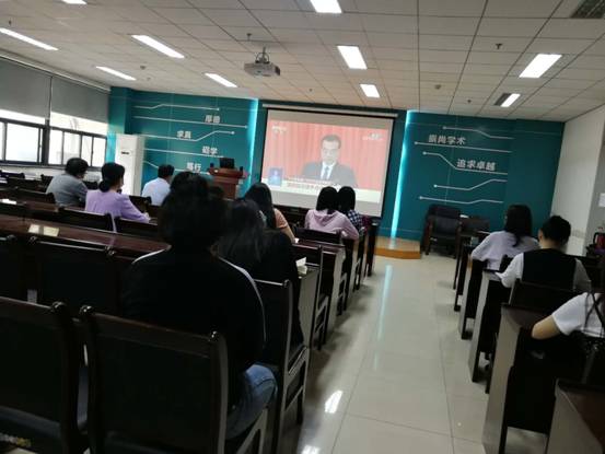 学院党委书记、机关工作人员和研究所联合支部教师学生党员在南校区G118会议室集体观看了开幕式,会议初始,全体起立奏唱国歌,接着向在新型冠状肺炎疫情中牺牲的烈士和逝世同胞默哀,之后大家认真聆听了李克强总理的政府工作报告。报告中回顾了2019年以来我国经济社会发展和今年疫情防控取得的成绩,并指出今年发展主要目标和下一阶段工作总体部署。着力稳企业保就业、增强发展新动能、扩大内需战略,推动经济发展方式加快转变、实现脱贫攻坚目标、对外开放、经济发展、保障和改善民生等方面工作指明了方向。大家在观看过程中仔细聆听,认真记录李克强总理讲话要点,对于关心的热点进行讨论交流。