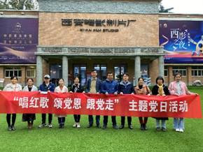 伴随着歌声,我们来到了西安电影制片厂,西安电影制片是建国后在西部建设的电影艺术殿堂,历经63年的发展,产出了大批有中国传统精神和浓郁地域文化的中国艺术影片、培养出几代优秀的导演、编剧、演员等电影艺术家。近四年,艺术家把积淀的影视文化资源打造成“电影+党课”培训基地,使得党建工作也更加精彩绚丽。纳米材料与技术系党支部通过主题党日开展了唱响红歌,重温入党誓词、回顾中国革命史等活动,感念党恩,从而坚定信念继续跟党走,同时也感受了电影的艺术魅力。