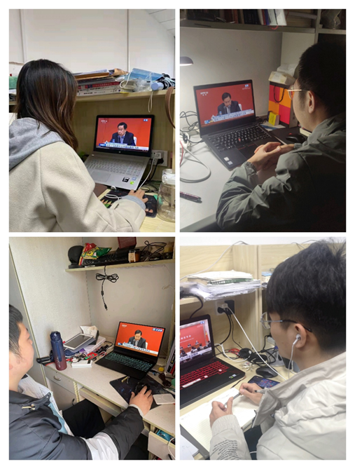通过线上和线下相结合的方式,组织师生通过电视、互联网和手机客户端等形式观看新闻发布会直播,热议十九届六中全会会议公报内容。