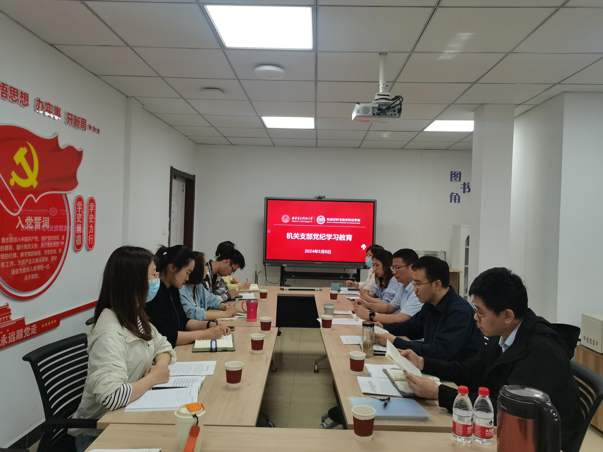 机关党支部在南校区工训中心四区302召开党纪学习教育会议,会议由机关支部书记陈刚主持。