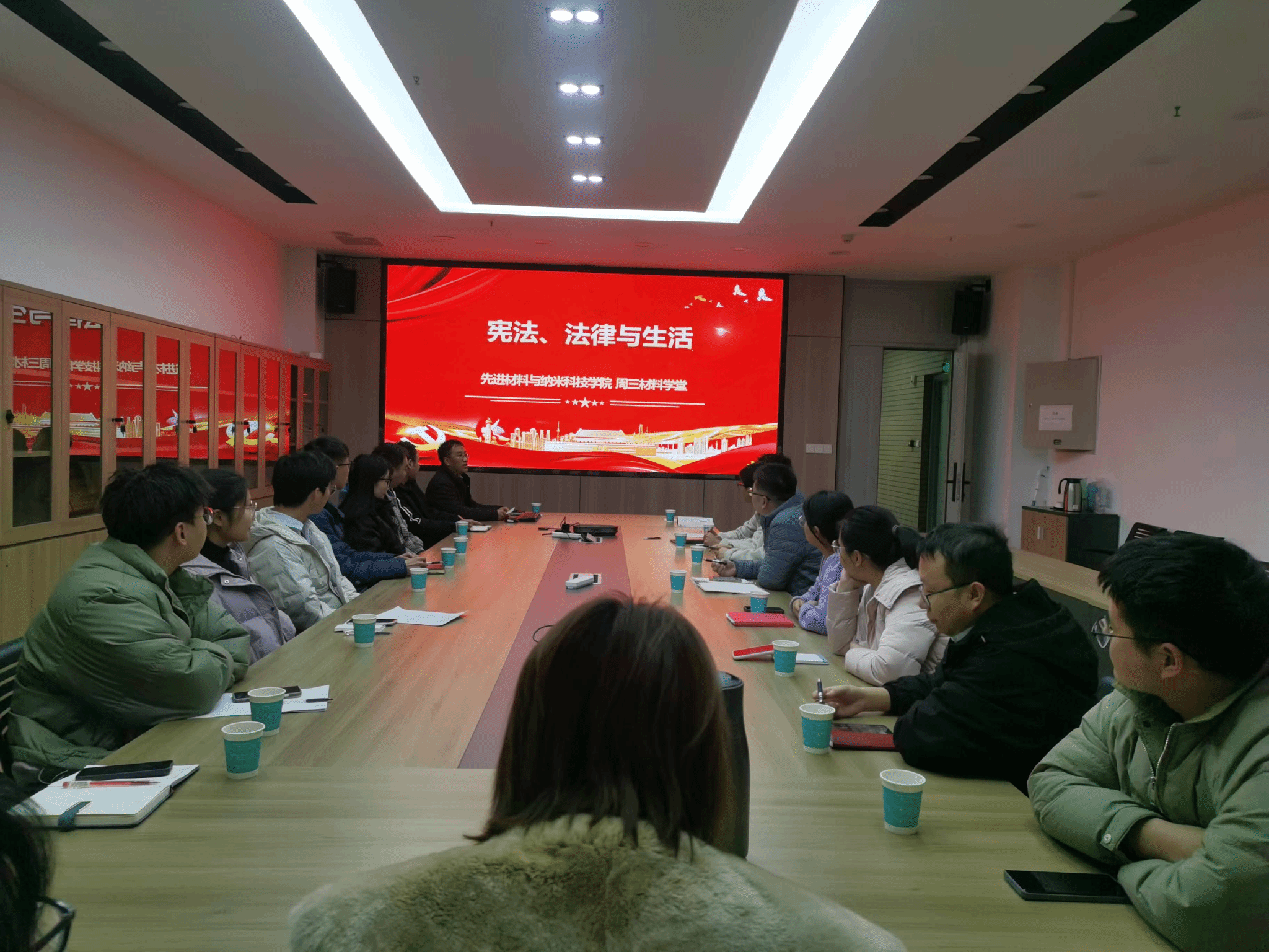 “周三材料学堂”开讲,学院党委书记宋刚锋作题为《宪法、法律与生活》分享,学院部分党员教师及入党积极分子20余人参加活动。