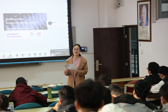 徐志平在题为《Morphogenesis of Nanostructured Carbon Fibers》的学术报告中,就碳纳米结构研究热点及当今碳材料加工-微观结构-性能的主要热点问题进行了详细介绍。最后又重点在本实验室研究方向碳纤维和薄膜的微观结构异质性进行了一定深度的阐述。