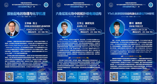 筹办了“材料学子学术沙龙”活动。该活动力图打造多样化的学生交流平台,涵盖学院各个年龄、学历层次,计划每期邀请3-4位同学(包括博士、硕士和本科生)来为大家做分享。1月7日,“材料学子学术沙龙”第一期正式开讲,杨子(博士研究生)、王倩雯(硕士研究生)和吴振闻(本科生)三位同学带来精彩的汇报,线上活动由博士研究生严刚主持。本期活动邀请了仲鹏、贾巧英两位老师担任学术沙龙导师,活动最后,两位老师对三位同学的精彩表现进行了点评。