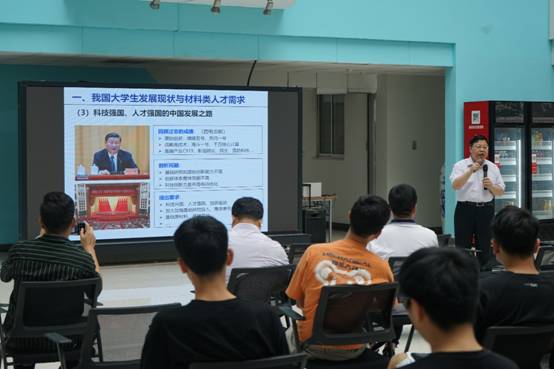 专业设置,提升学生专业认知,助力大类招生背景下的专业分流,更好地发挥“双院育人”作用,6月9日下午,“材料名师进书院”宣讲活动第一期在竹园4号楼二楼中厅举行。国家级教学名师周益春教授为70余名学生带来“基于钱学森工程科学思想的人才培养”主题报告,学院党委书记卢硕、党委副书记程远参加了此次活动。宣讲活动由学院副院长施建章主持。