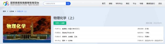 梁燕萍教授负责主讲的《物理化学》(上、下)课程上线国家智慧高教平台,也成为a片动画