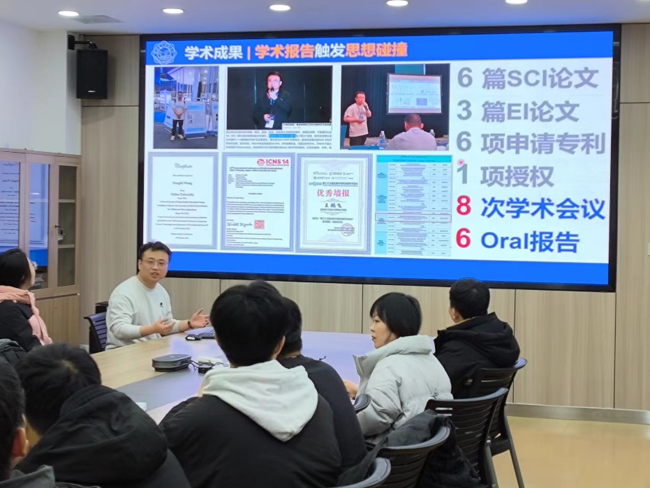 王鹏飞系微电子学院2020级春季博士,他分享了自己从了解、探索再到逐步深入所研究课题的经历,向同学们讲述了扎实的理论基础及广泛阅读文献的重要性,他强调只要找准方向、一以贯之,就一定能有所收获。随后,王鹏飞从科研起步阶段、研究方向的确定、思维体系的培养、科研过程中心态的调节、论文写作技巧以及科研过程中可能遇到的一些问题等方面进行了细致的分享。最后,王鹏飞感谢课题组老师的敦敦教诲及师弟师妹们的无私帮助,他号召同学们在完成自己的科研任务之余,也应当积极承担好自己的责任,力所能及地分享和传授科研学习经验,做好传帮带育人工作。
