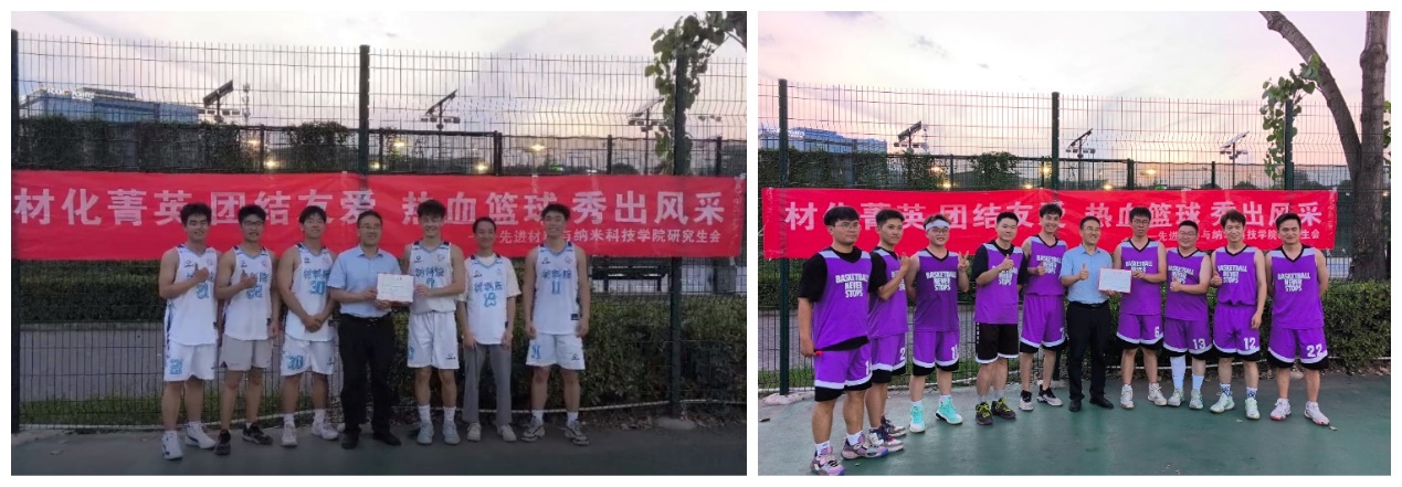 在南校区篮球场举办“NANO杯”篮球友谊赛,6月18日晚,学院党委书记宋刚锋观战决赛,并为获奖团队颁奖。