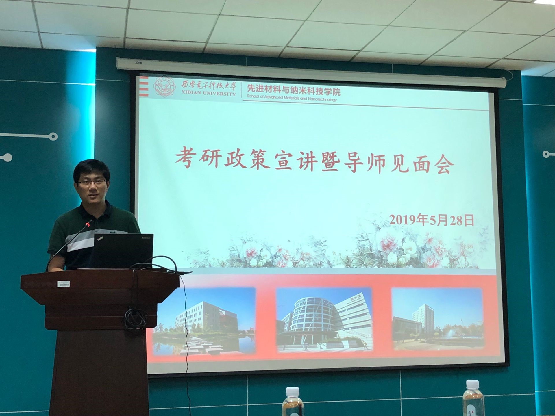 学院老师主要对自己的课题组进行详细介绍。杨如森教授、胡英教授详细介绍了其智能材料课题组的主要研究方向:新能源、纳米发电机等,其课题组注重国际交流,并经常参与国内、外重大会议,能够很好地拓宽学生们的视野,杨如森教授鼓励大家走进实验室,专心科学研究。