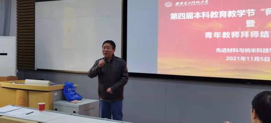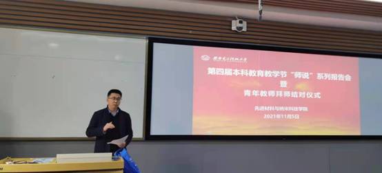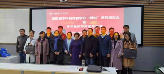 第四届本科教育教学节“师说”系列首场报告会暨青年教师拜师结对仪式在信远Ι区105教室成功举行。本科生院教学发展中心主任杨明磊、学院副院长施建章、青年教师助教工作指导教师、青年助教及部分学院教师参加了此次活动。学校教学督导曹全喜教授应邀做主题报告。本次活动由副院长施建章主持。