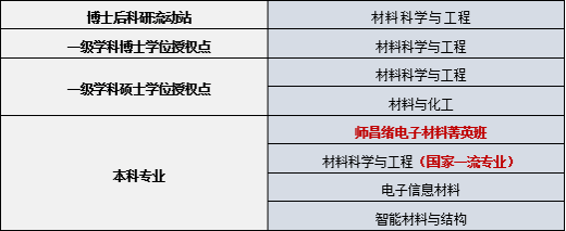 师昌绪电子材料菁英班(以下简称师昌绪班,所属专业为材料科学与工程)